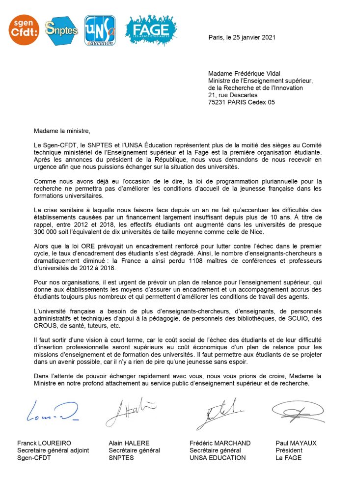 25-01-21_Frédérique-Vidal-_Sgen_SNPTES_UNSA-EDUCATION_FAGE_page-0001