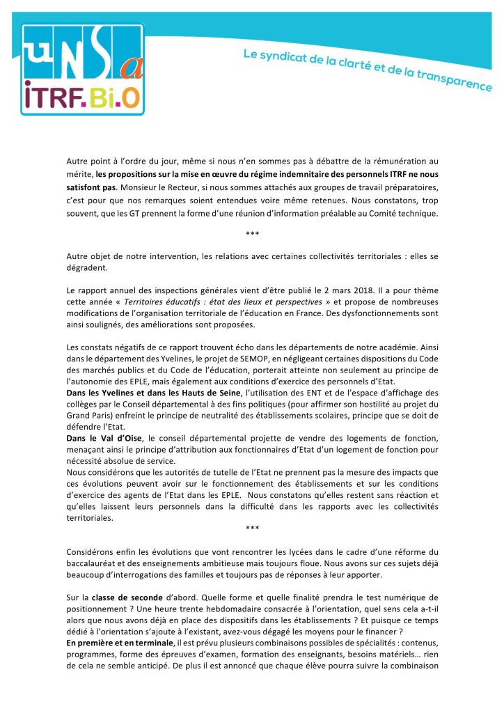 CTA 12 mars 2018 : déclaration liminaire UNSA Education25 mars 2018 dans Ac-Versailles Déclaration liminaire CTA 12-03-2018