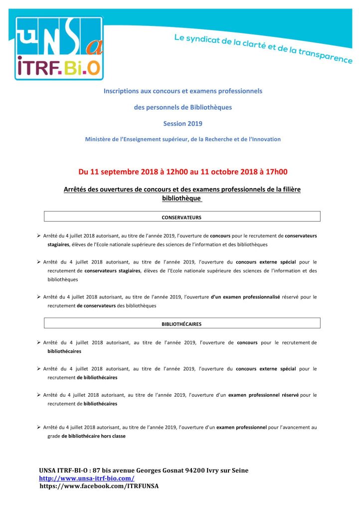 ATTENTION : modification de l’ Arrêté du 14 août 2018 modifiant l’arrêté du 4 juillet 2018 autorisant, au titre de l’année 2019, l’ouverture du concours externe spécial pour le recrutement de bibliothécaires